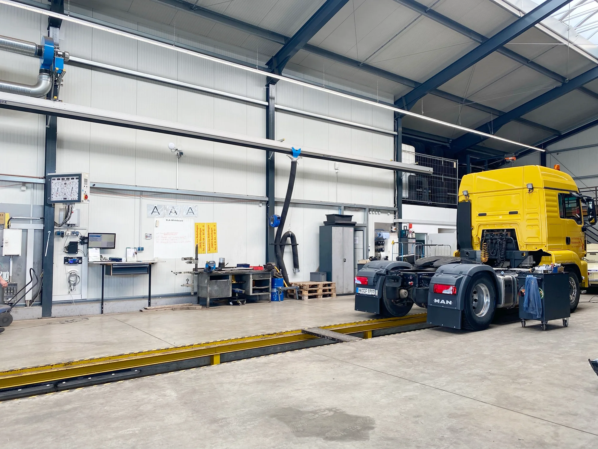 Mit unserer modernen 800 m² Lkw-Werkstatthalle setzen wir neue Maßstäbe in der Instandsetzung von Nutzfahrzeugen.